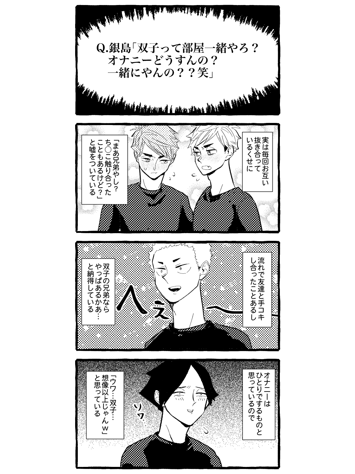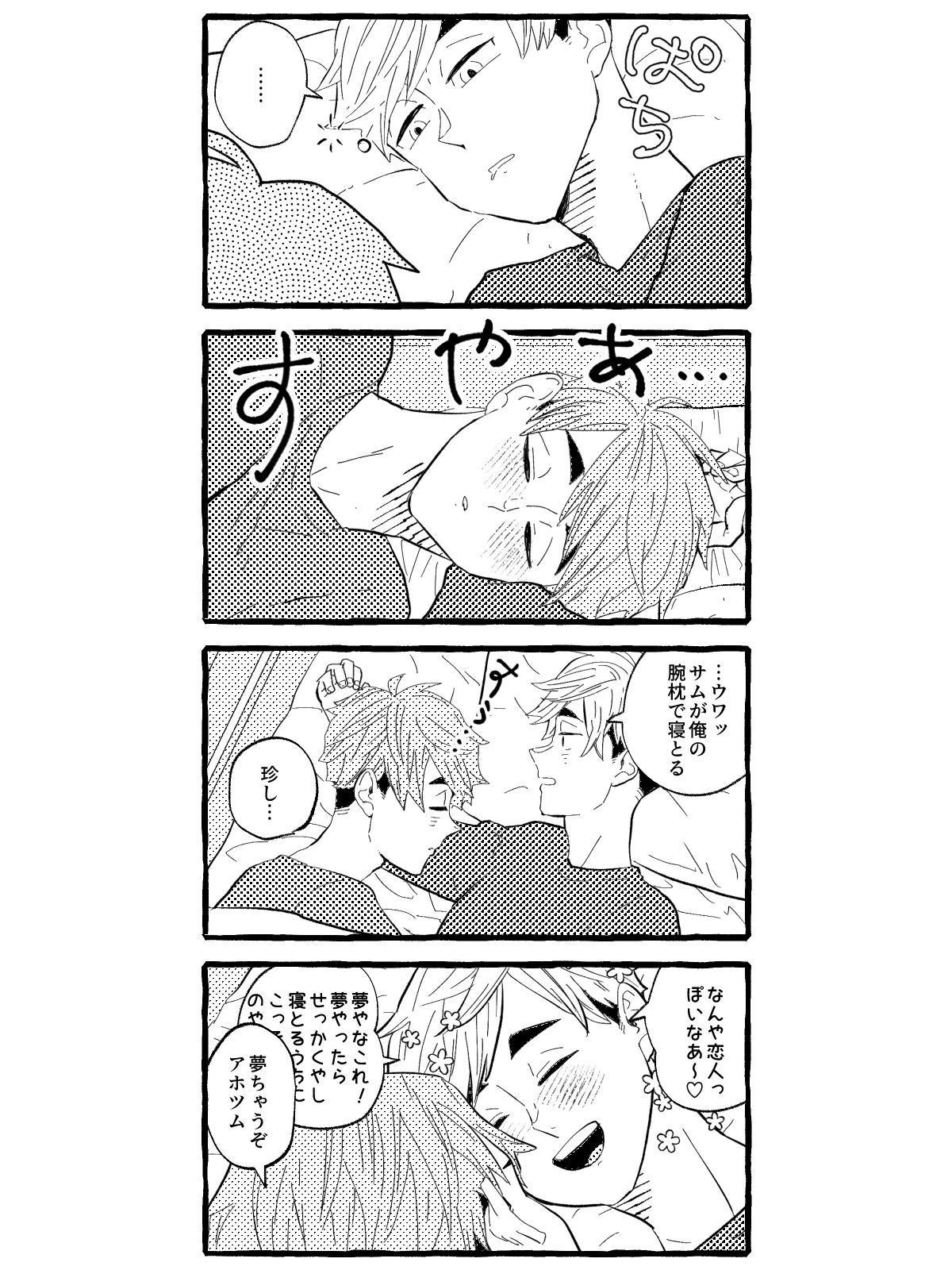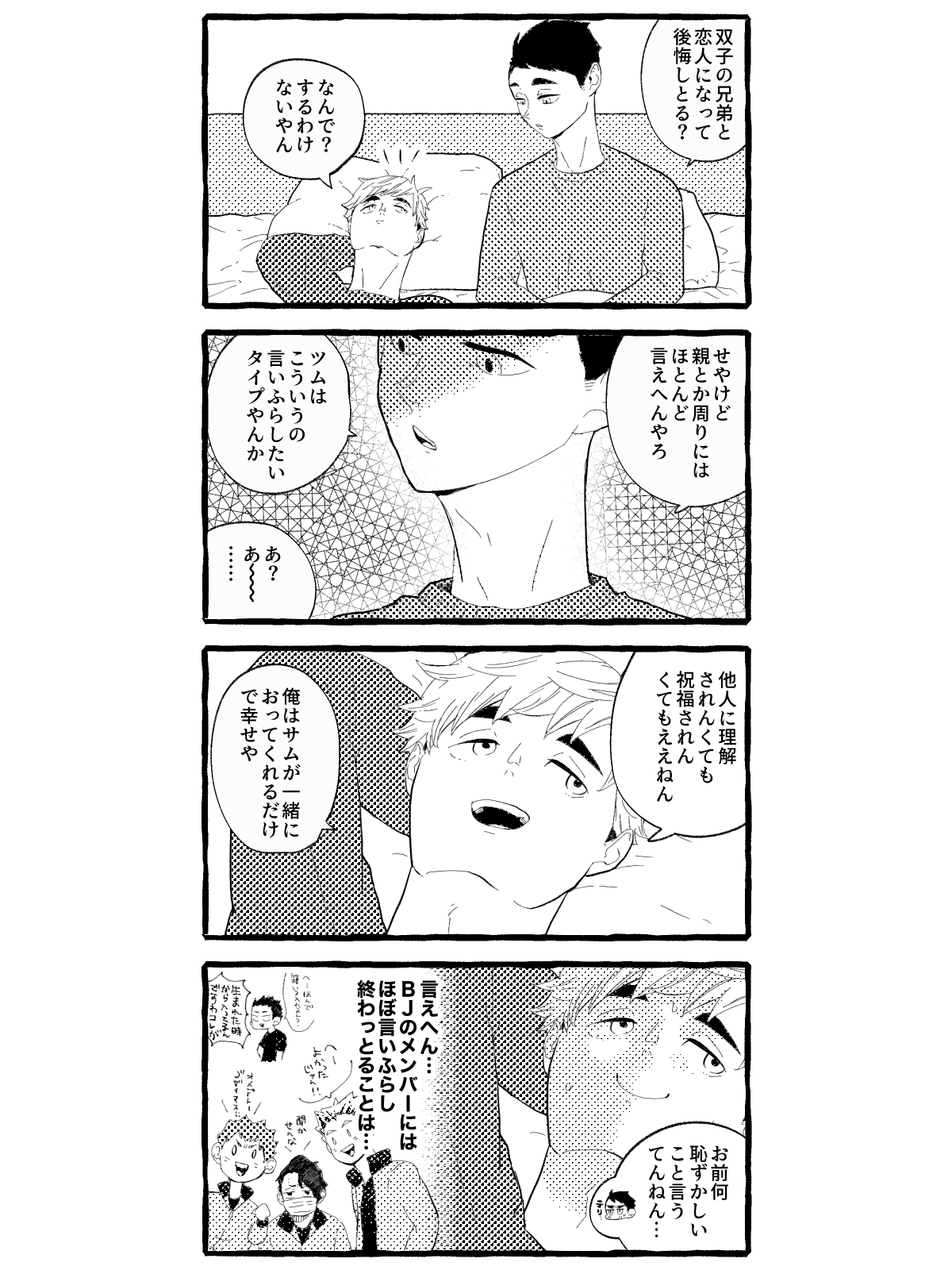 匂わせも言いふらしてのろけるのもしたいタイプの侑くんとこっそり付き合ってれば満足の治くん(世間の目もあるし)→匂わせは我慢しているがどうしても仲間には言っちゃった侑くん かわいい #あつおさ 2024.11.19(Tue) 07:34:57 pic edit